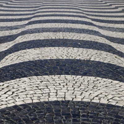 Paralelipipedos. Orgânicos mosaicos, em geral azuis e brancos. Padrões heterogéneos que atravessam o Atlântico. No Rossio ou em Copacabana, há uma onda que nos une, funde e constrói, como o vento que imperturbável dá nas vagas do mar lá longe, onde a vista não alcança,